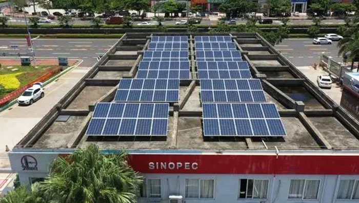 屋頂上建光伏電站,項目不占用土地資源,充分利用了加油站建筑物的閑置資源。據悉,中國石化已在全國25個省區市建成分布式光伏發電站點205座了,是名副其實的“建站狂魔”~不過離7000座這個小目標還有一定差距。